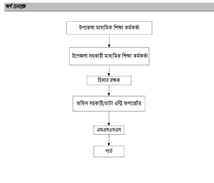 শিক্ষা মন্ত্রণালয়ের অধীনে মাধ্যমিক ও উচ্চ শিক্ষা অধিদপ্তরের আওতায় জেলা শিক্ষা অফিসের তত্ত্বাবধানে উপজেলা মাধ্যমিক শিক্ষা অফিসটি পরিচালিত। উপজেলা মাধ্যমিক শিক্ষা অফিসার এই অফিসের অফিস প্রধান হিসেবে দায়িত্ব পালন করেন। নিম্নের ছবিতে এই অফিসের সাংগঠনিক কাঠামো দেওয়া হল।
